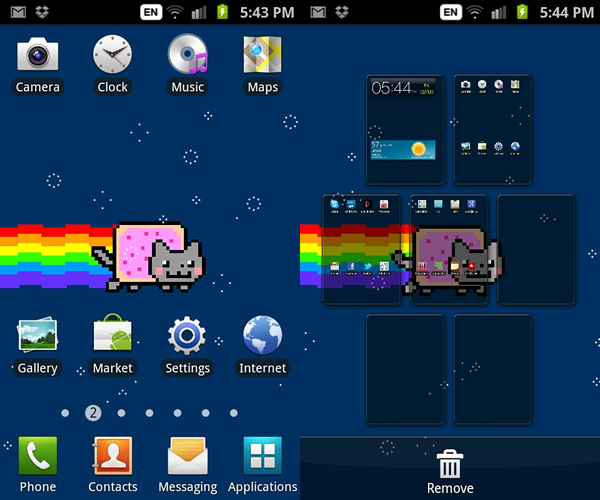 It’s possible to get animated backgrounds with Android 2. I have a fondness for internet memes, so I went with the always-popular Nyan Cat, a rainbow exuding pastry-based feline.