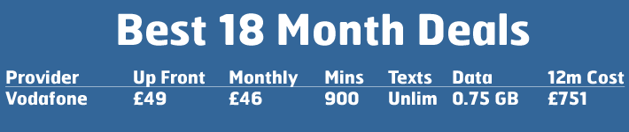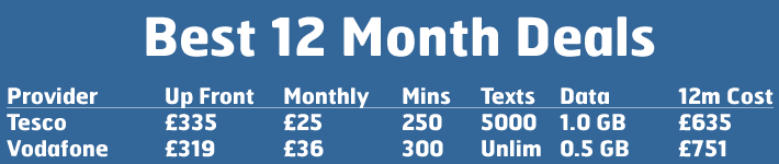 It’s also possible to take a 12 month contract. These middle-of-the-road deals offer a lower (but still significant) upfront cost but a higher monthly rate. The advantage of the 12 month contract is the cost is spread out more evenly across the year, and you’re free to upgrade your phone or switch to a cheaper contract after a year, which seems a much more reasonable amount of time than two.