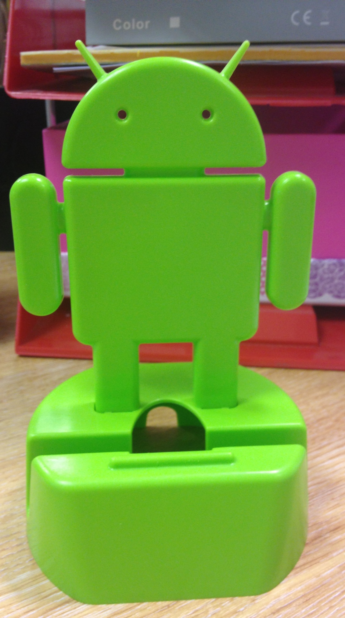 It goes great with Andi, our Android Robot Speaker and is universal, holding all phone styles either portrait or landscape. What’s clever about the CozyBot though is that you can run your charging cable through the back of it, no matter how bulky the adaptor is. I’ve been using it on my desk for the last couple of days and I think it looks pretty cute.