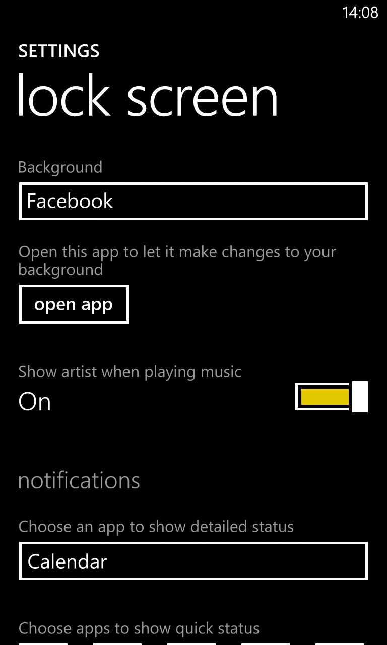 You might have spotted that there is an option to choose an app for which to get a detailed status. Detailed statuses, as the name suggests, give you more information than quick status which just tell you the number of events that have happened such as number of missed calls. I like to see full, detailed calendar events but you can choose to see detailed Facebook or Whatsapp updates instead, for example, if that’s what you prefer.