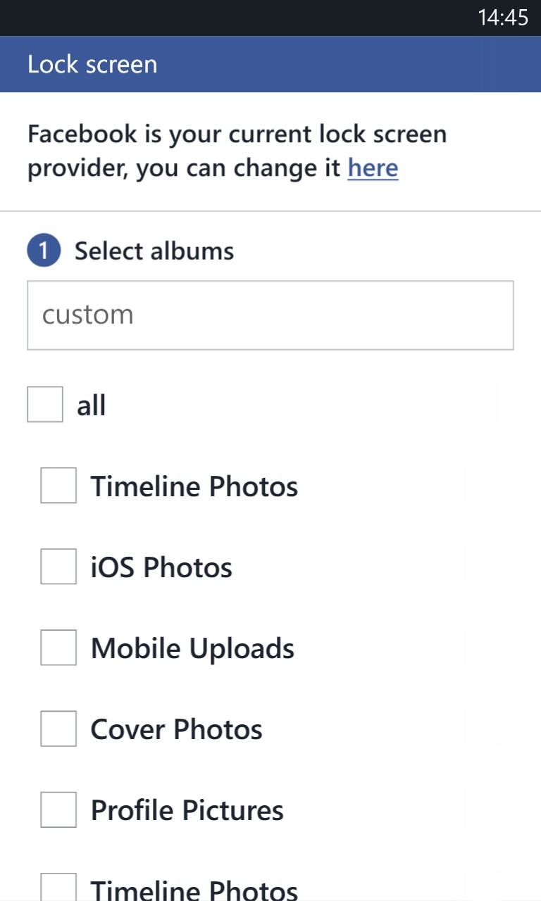 In the example above I chose Facebook as my background app and allowed it to randomly select photos from my choice of Facebook albums and create a background that updates automatically. That way I get to see different photos from my albums every 30 minutes or so.