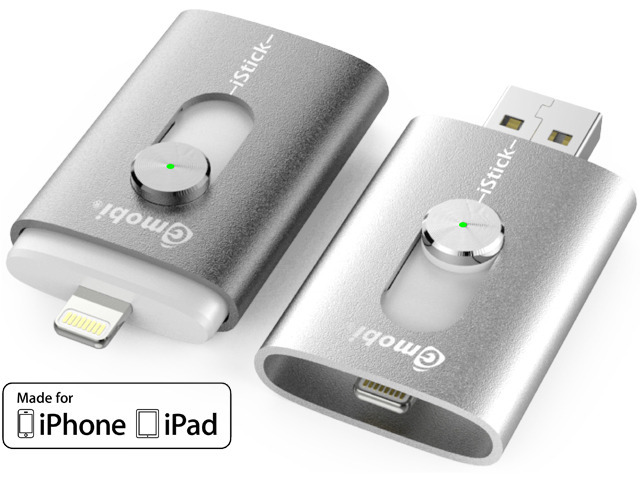 The iStick is a USB flash drive with a standard USB connector on one end, and a Lightning connector on the other. This allows you to copy files between your PC and iOS device, and is quicker and easier than many wireless options.